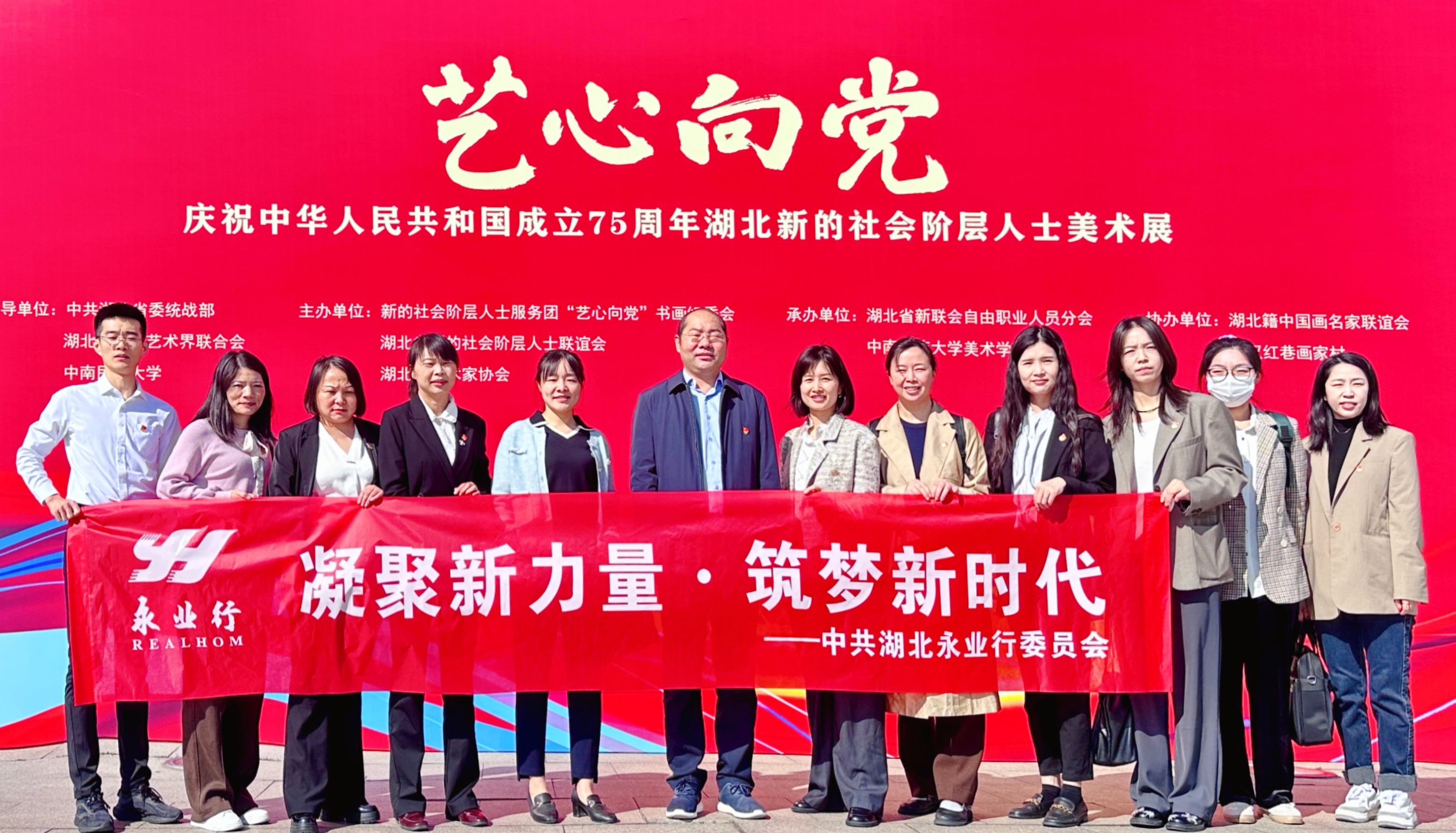 2024年10月25日,中共湖北永业行委员会组织开展2024年第四季度“凝聚新力量·筑梦新时代”主题教育活动,赴中南民族大学参观“艺心向党”——庆祝中华人民共和国成立75周年湖北新的社会阶层人士美术展。展会由中共湖北省委统战部、湖北省文学艺术界联合会、中南民族大学指导,新的社会阶层人士服务团“艺心向党”书画组委会、湖北省新的社会阶层人士联谊会、湖北省美术家协会共同举办。受永业行党委书记、董事长潘世炳委托,党委委员、常务副总裁吴学锋带领各支部书记、党员代表参加活动。 美术展紧紧围绕中华人民共和国成立75周年主题,在2024年“凝聚