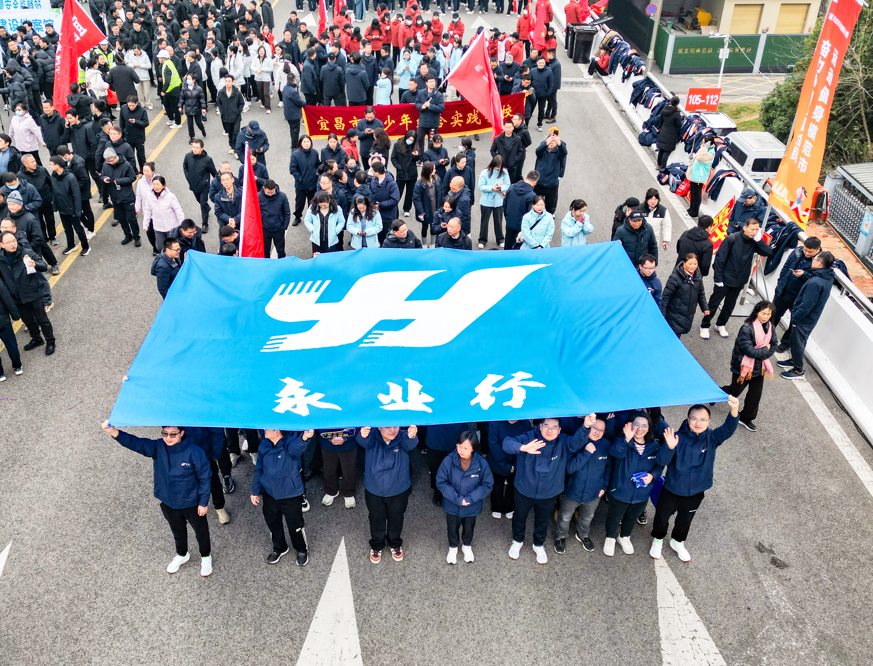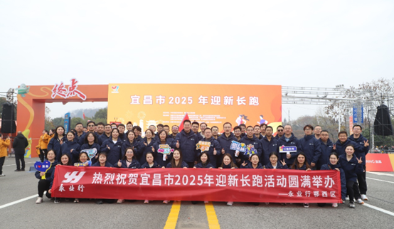 2024年12月30日9:30,宜昌市2025年迎新长跑在夷陵长江大桥举行。永业行副总裁兼鄂西区总经理雷小明,执行总经理杨懿、黄丽群,副总经理赵智伟等带领鄂西区60余名员工参加活动。