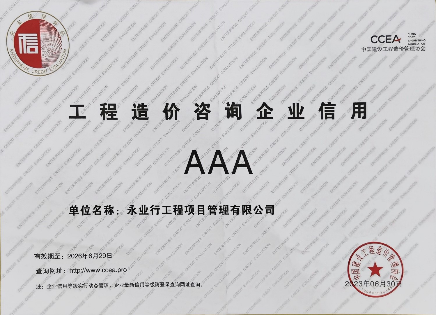 工程造价咨询企业信用3A